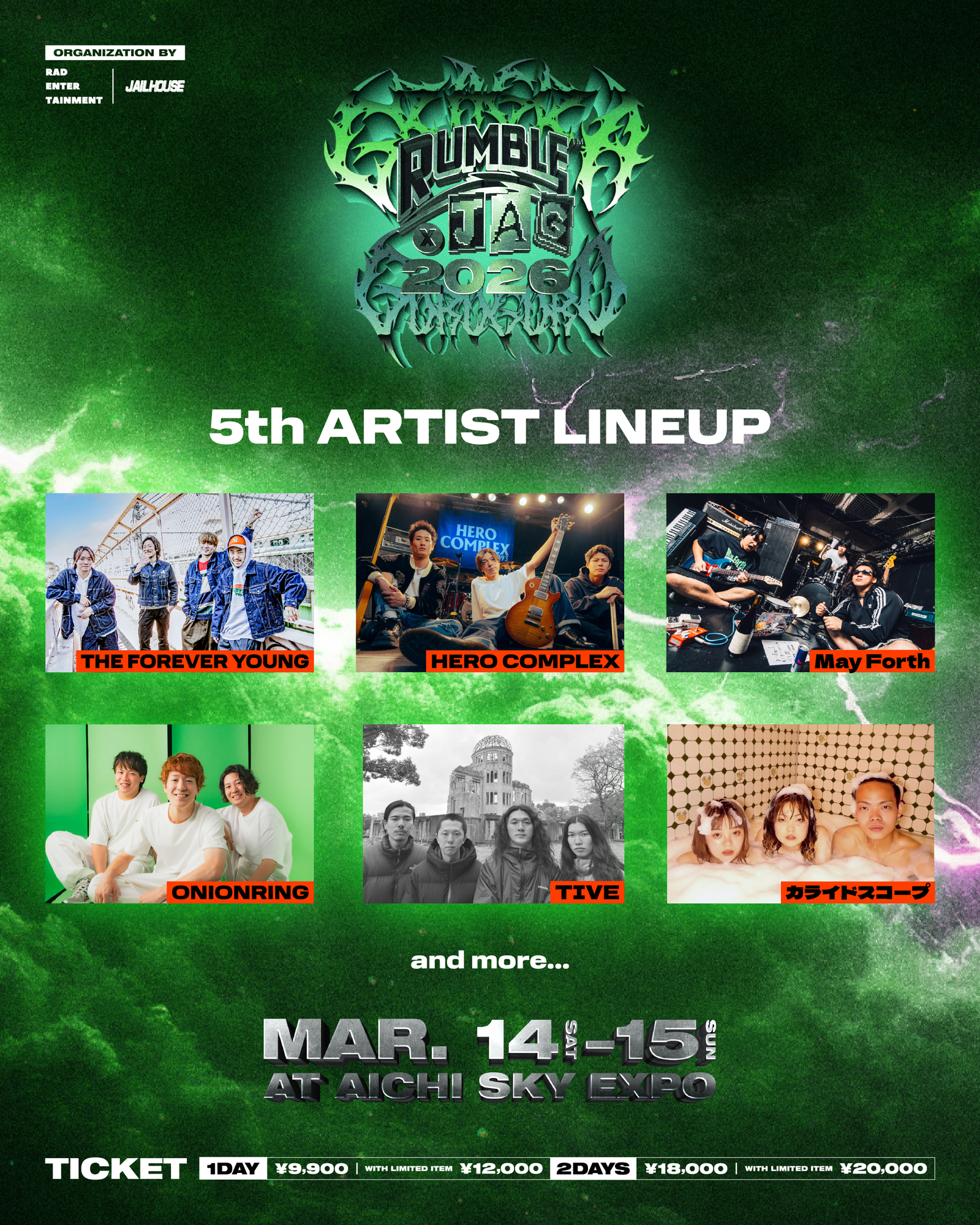 【NEWS!!】RAD ENTERTAINMENT×JAILHOUSEによるパンク・ラウドフェス「RUMBLE×JAG 2026」GIRAGIRA STAGE第1弾出演アーティストとしてTHE FOREVER YOUNG / HERO COMPLEX / May Forth / ONIONRING / TIVE / カライドスコープの6組の出演を発表!併せてGIRAGIRA STAGEの日割りも!