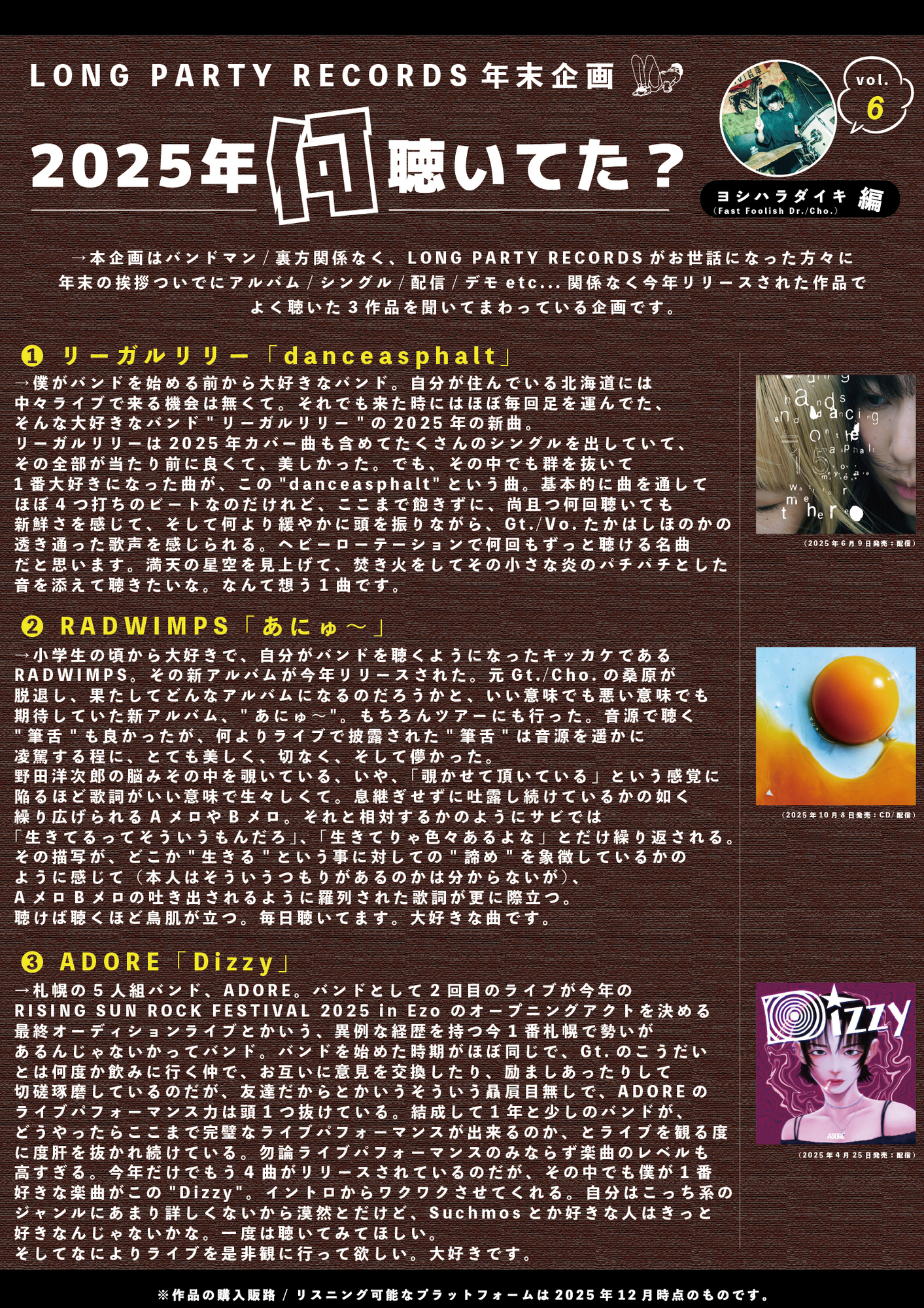【第6回 ヨシハラダイキ(Fast Foolish)編】LONG PARTY RECORDS 年末企画"2025年何聴いてた?"