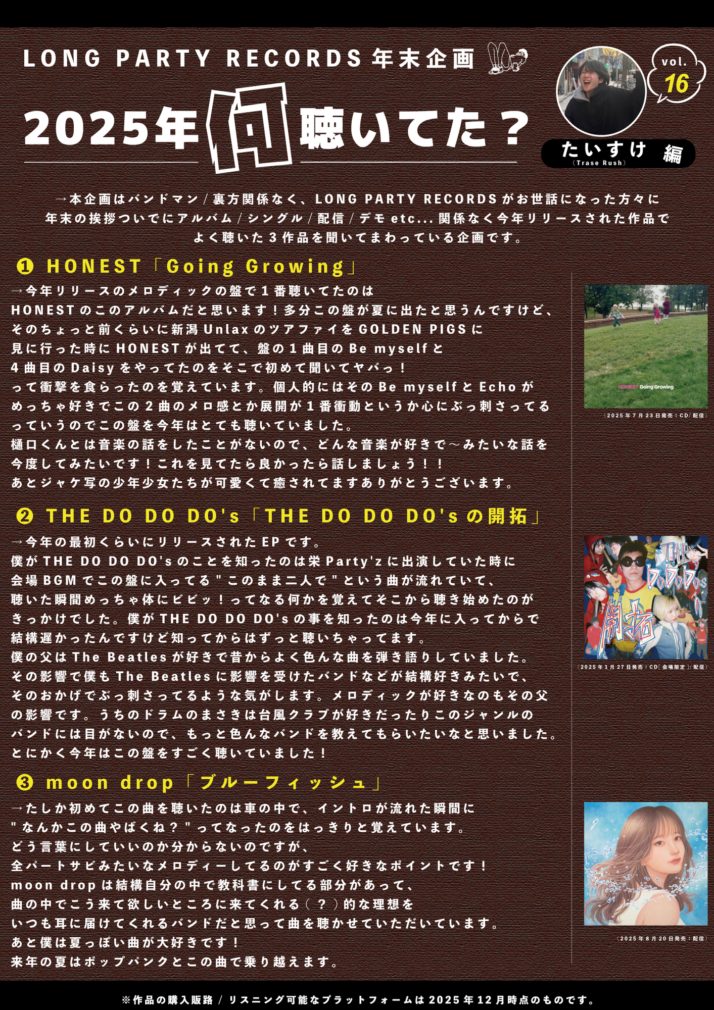 【第16回 たいすけ (Trase Rush) 編】LONG PARTY RECORDS 年末企画"2025年何聴いてた?"