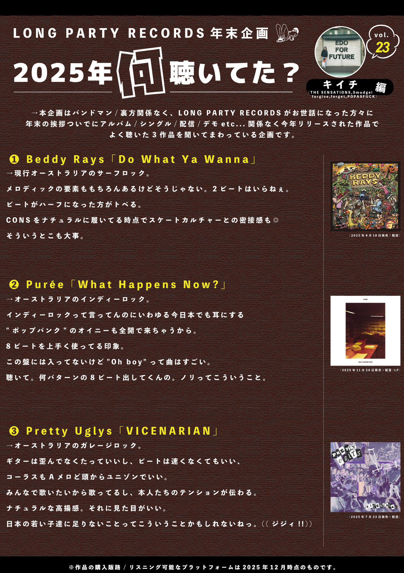 【第23回 キイチ(THE SENSATIONS,Smudge!,forgive,forget,POPASFUCK)編】LONG PARTY RECORDS 年末企画"2025年何聴いてた?"