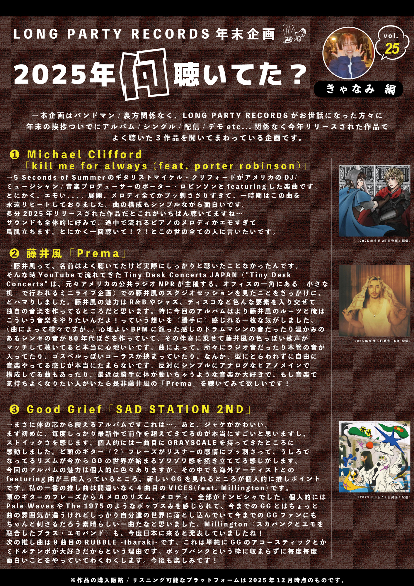【第25回 きゃなみ編】LONG PARTY RECORDS 年末企画"2025年何聴いてた?"