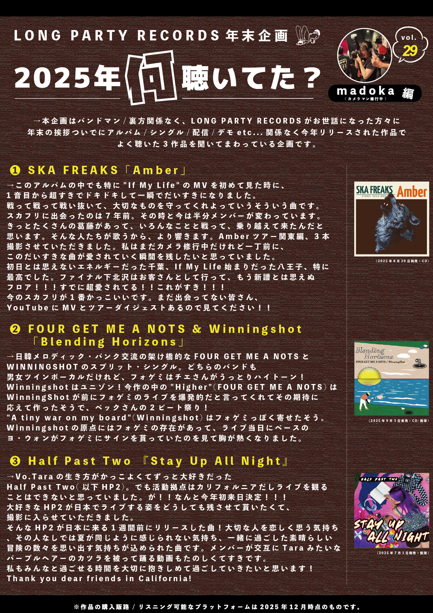 【第29回 madoka(カメラマン修行中)編】LONG PARTY RECORDS 年末企画"2025年何聴いてた?"