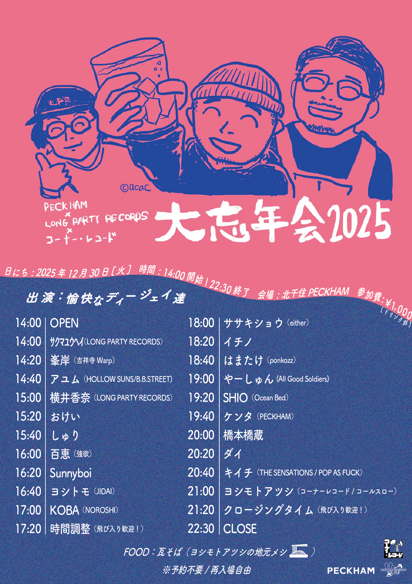 2025年12月30日(火)北千住 PECKHAM PECKHAM x LONG PARTY RECORDS x コーナーレコードPre.『大忘年会 2025』