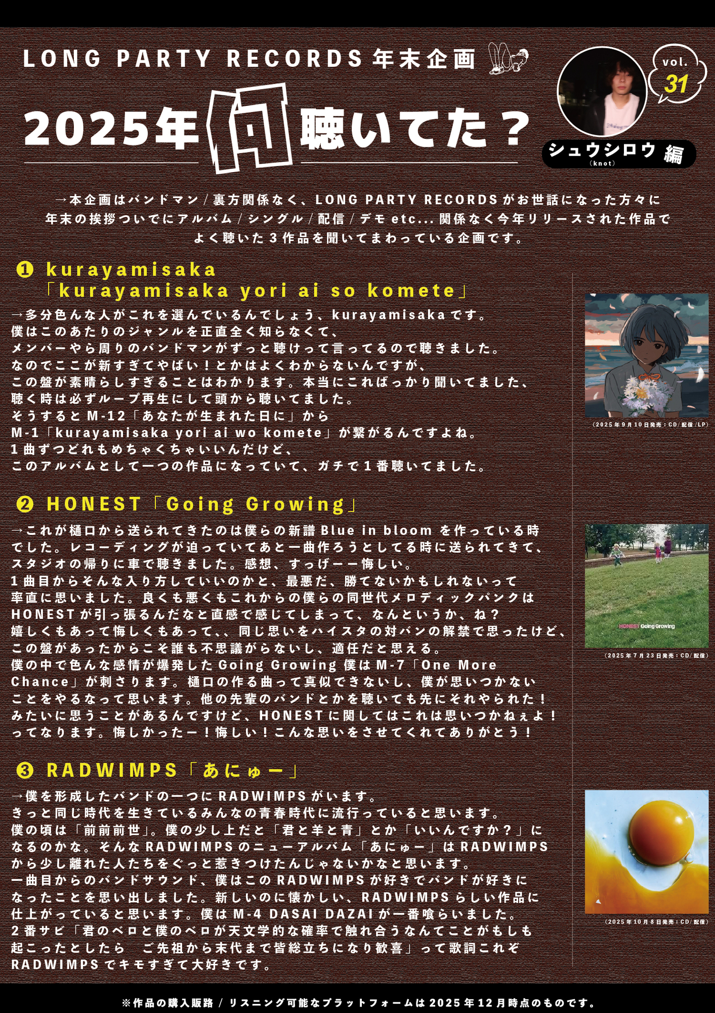 【第31回 シュウシロウ(knot)編】LONG PARTY RECORDS 年末企画"2025年何聴いてた?"