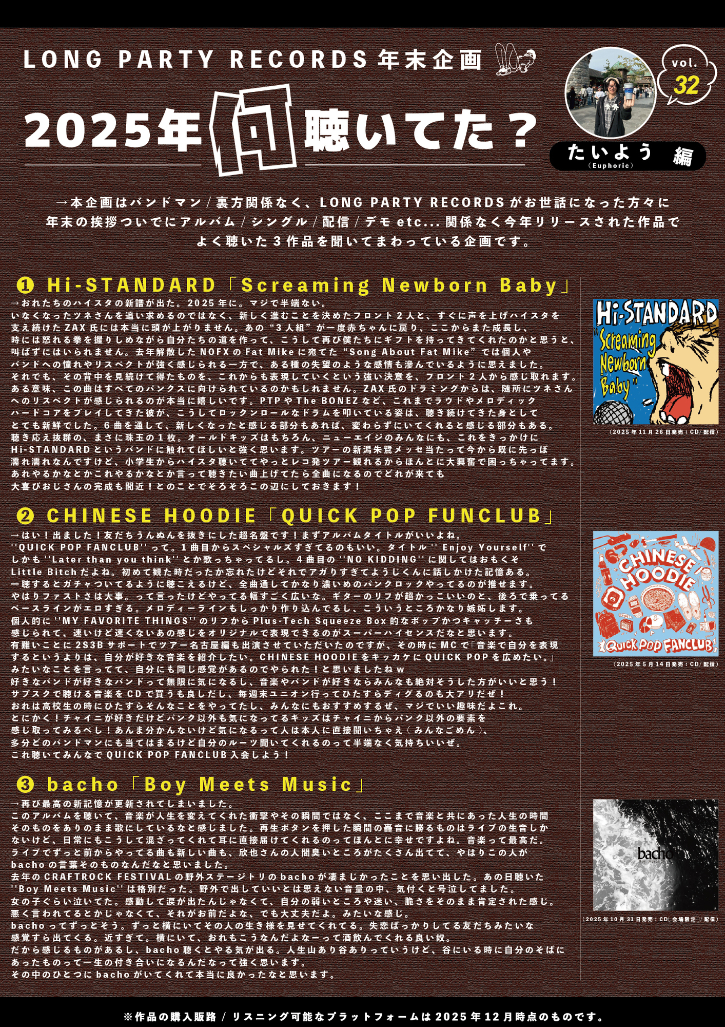 【第32回 たいよう(Euphoric)編】LONG PARTY RECORDS 年末企画"2025年何聴いてた?"