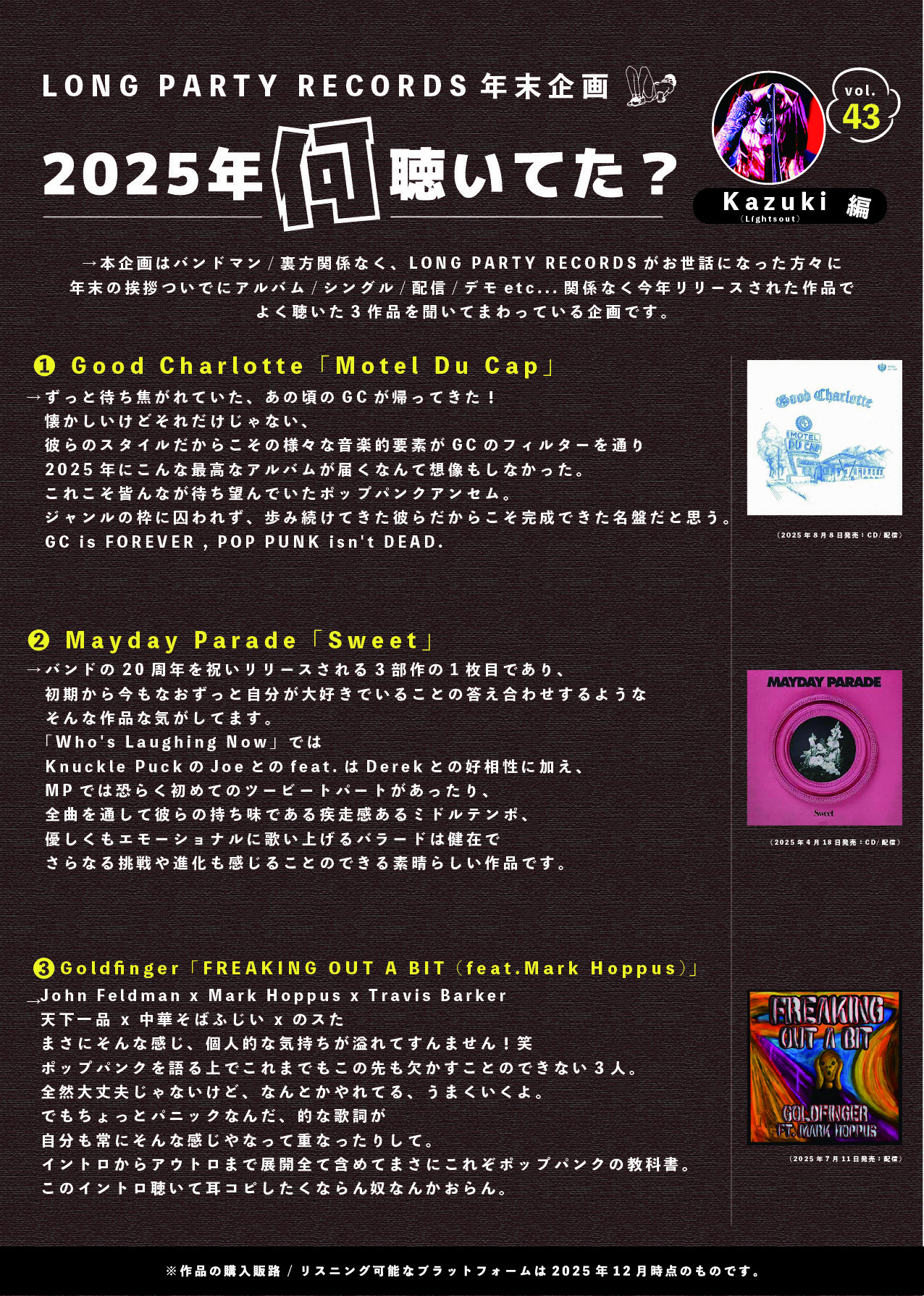 【第43回 KAZUKI(Lightsout) 編】LONG PARTY RECORDS 年末企画"2025年何聴いてた?"