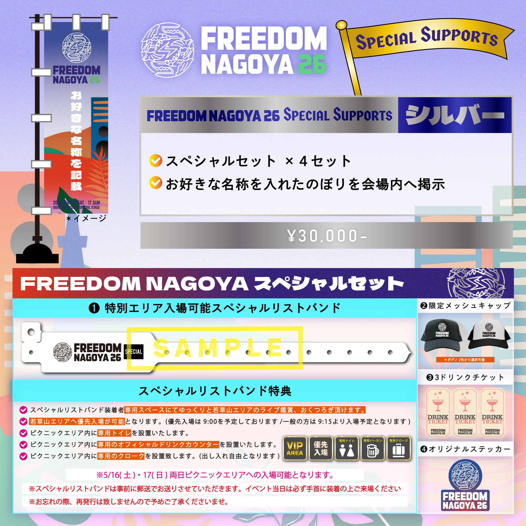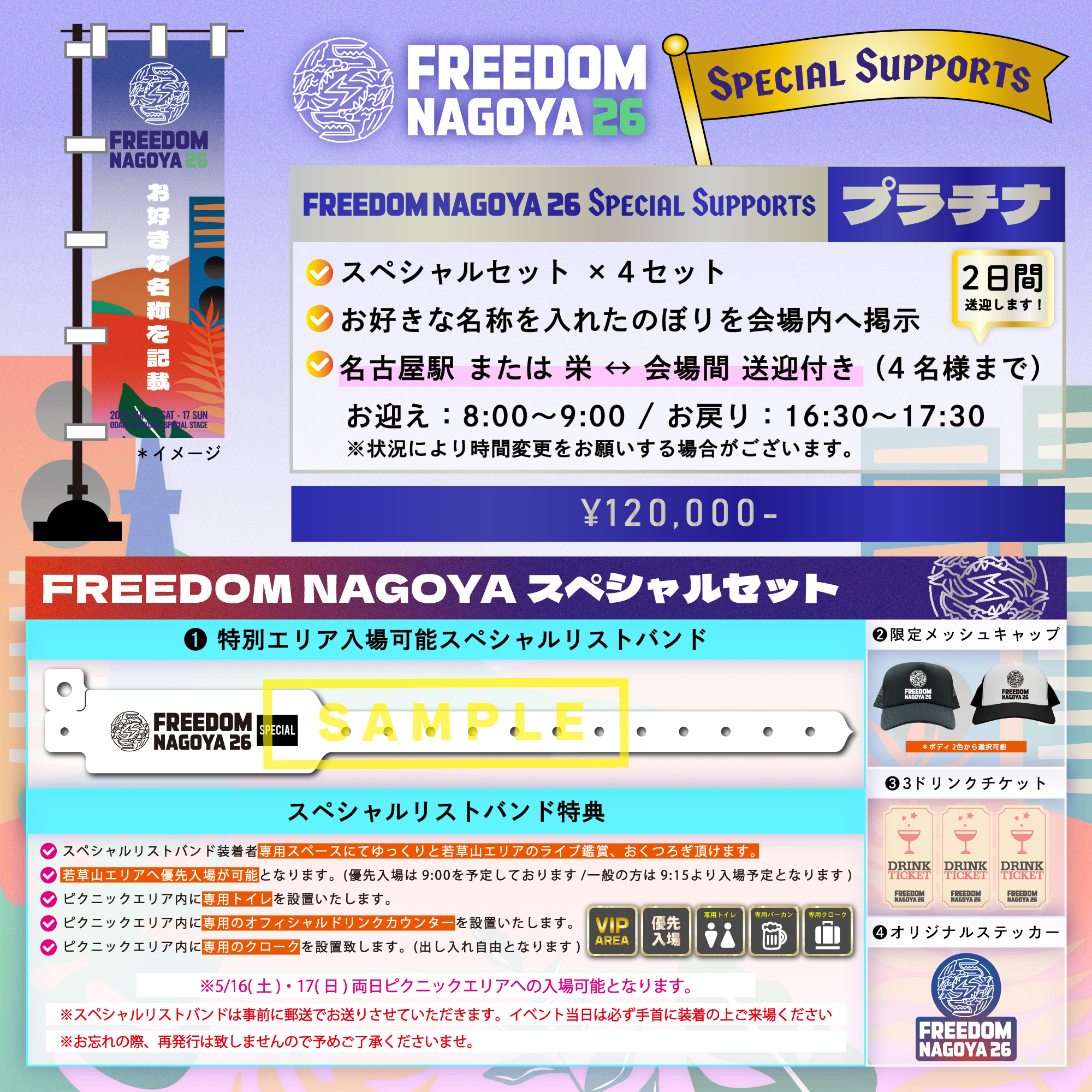 そして、入場無料フェス「FREEDOM NAGOYA」をサポートしたいというお客様から、ありがたいご提案を多数頂きましたため、今年から新たにFREEDOM NAGOYA Special Supports セットの販売を開始いたします。