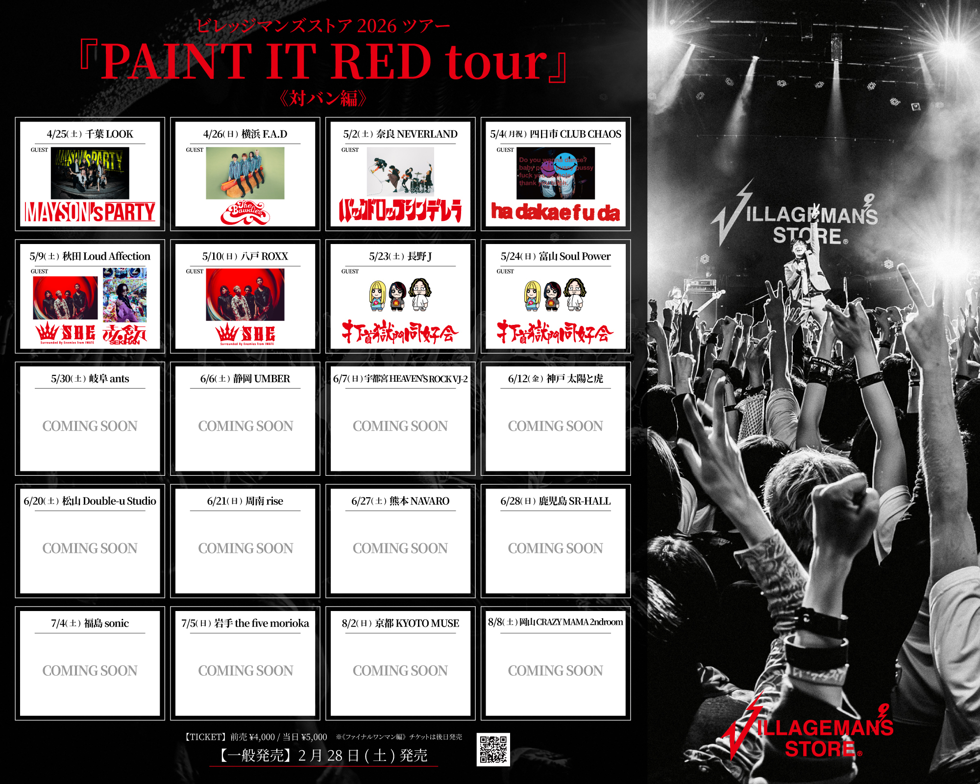 【NEWS!!】ビレッジマンズストア 2026ツアー「PAINT IT RED tour」第二弾ゲスト解禁!