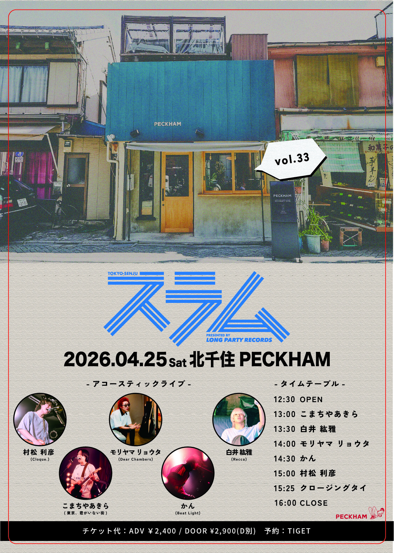 2026年4月25日(土)北千住 PECKHAM | LONG PARTY RECORDS Pre.『スラム』vol.33