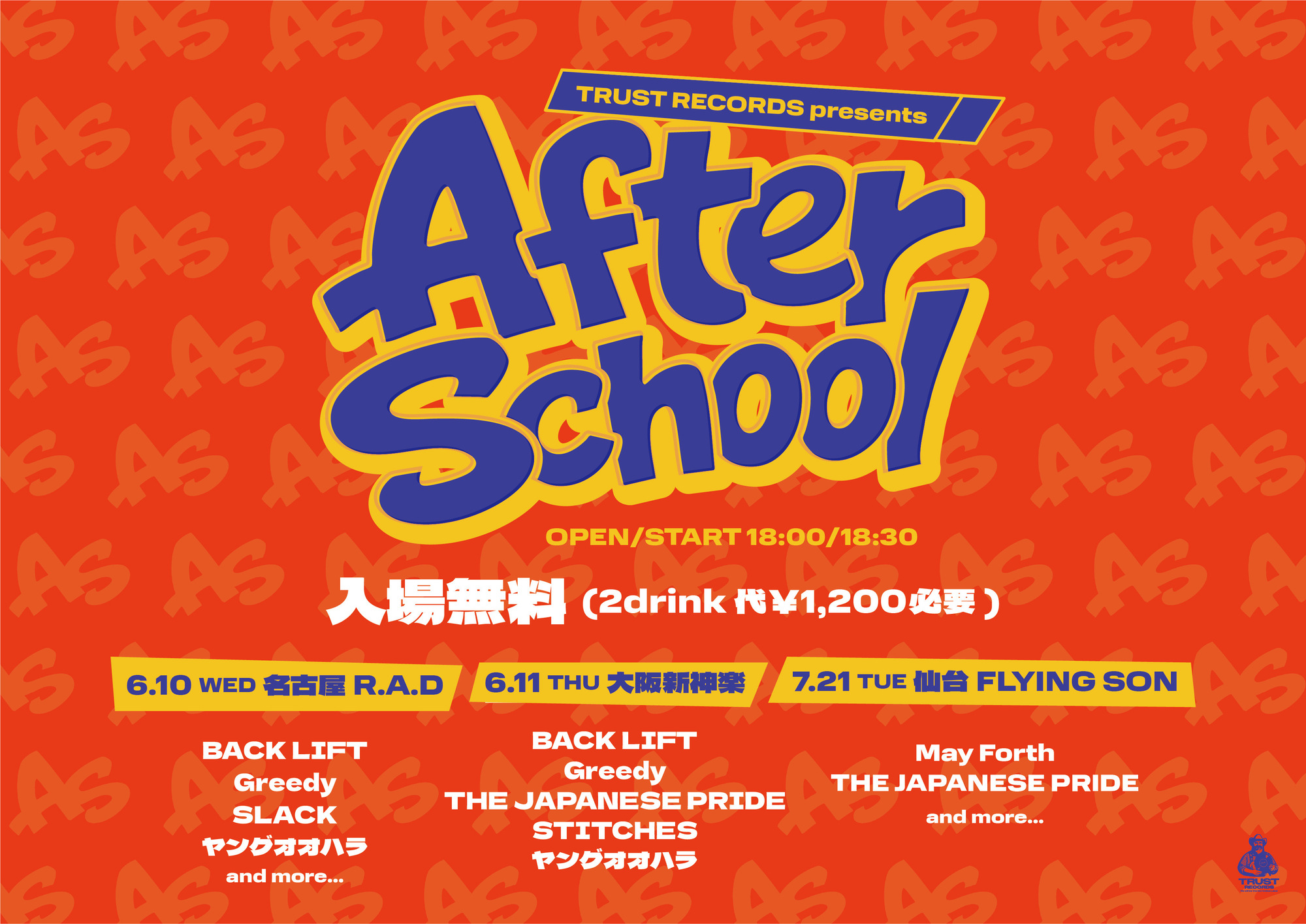 「After School」では、学校終わり、仕事終わりにふらっとライブハウスに足を運んでほしいという思いからチケットは全公演入場無料(別途2ドリンク代¥1,200必要)で、名古屋R.A.D、大阪 新神楽、仙台FLYING SON の3会場での開催を予定。