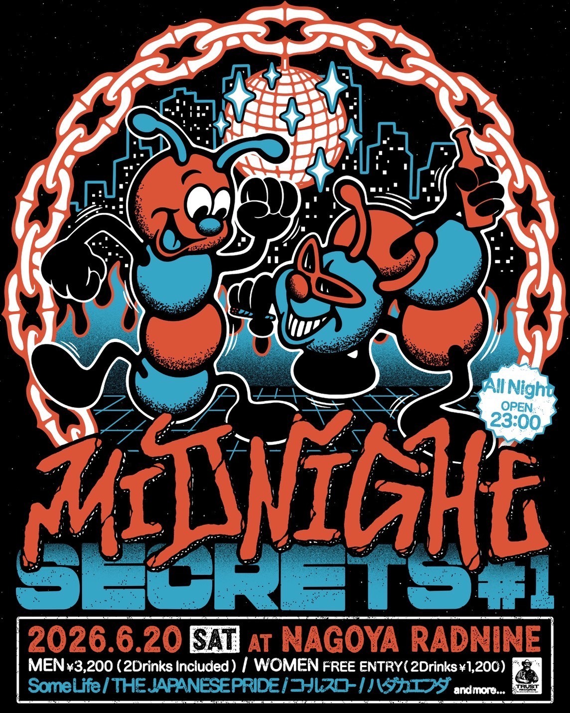 名古屋のインディーズレーベル TRUST RECORDS が新企画として、入場無料イベント「After School」とオールナイトイベント「Midnight Secrets #1」の開催を発表した。