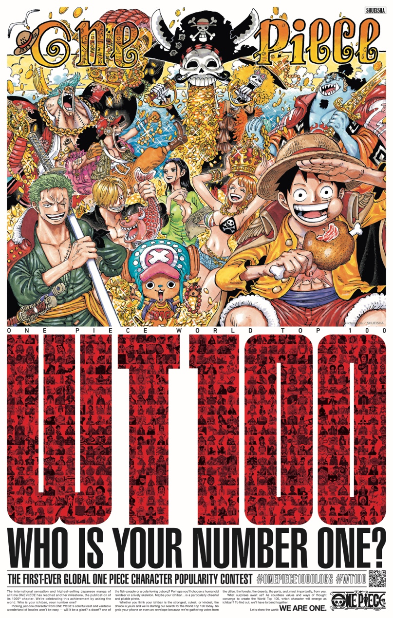 この「第1回 ONE PIECEキャラクター世界人気投票」は世界中の読者の投票によって、1000超のキャラクターからTOP100を決めるプロジェクトとなり、世界のTOP100の結果を比較することで価値観の違 いや多様性をともに体験するプロジェクトとなっている。