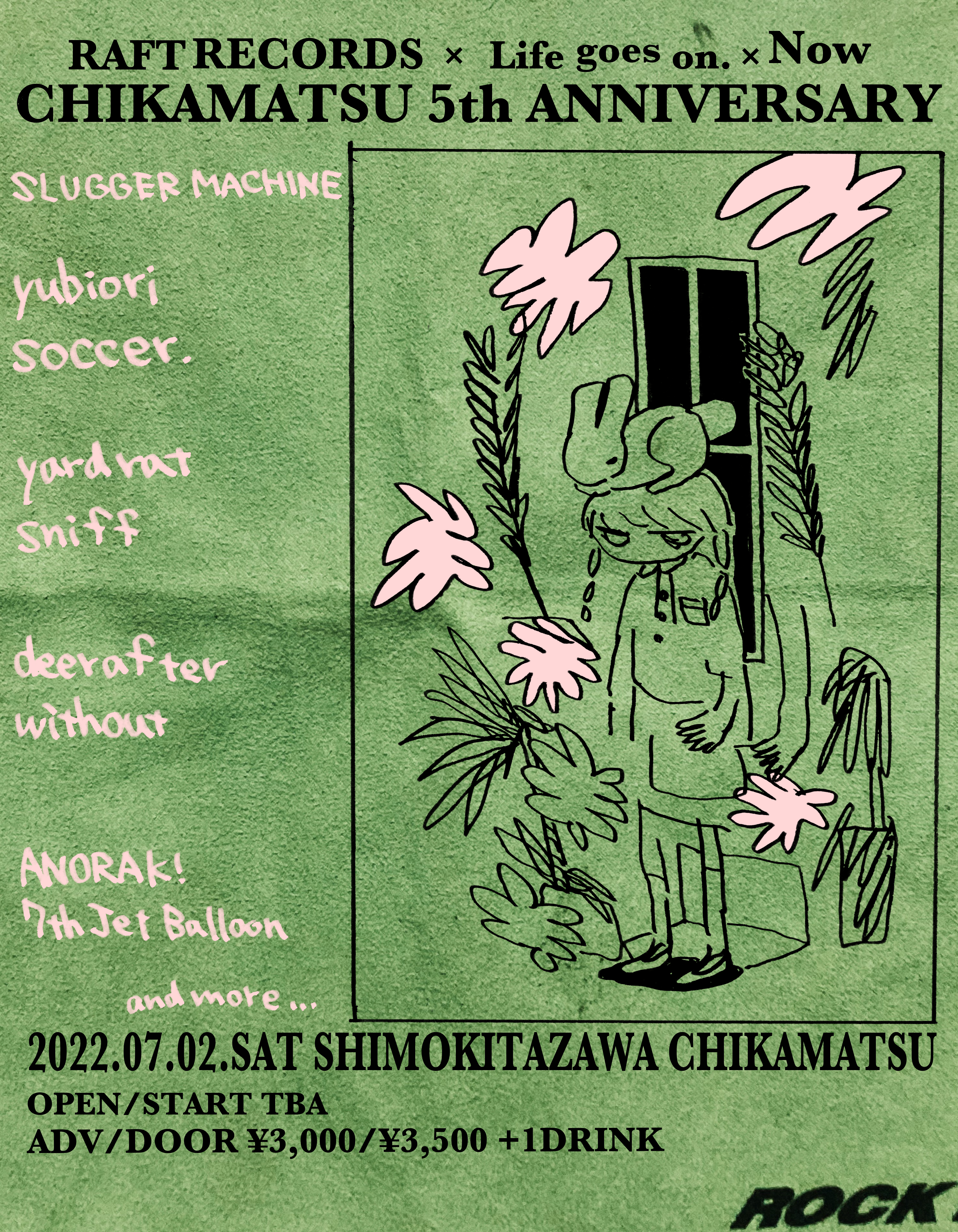 7月2日(火)に下北沢近松で行われるイベントNow、横浜のRAFT RECORDS、個人イベントLife goes on.が下北沢近松の5周年を記念して共同企画を開催する事を発表した。
