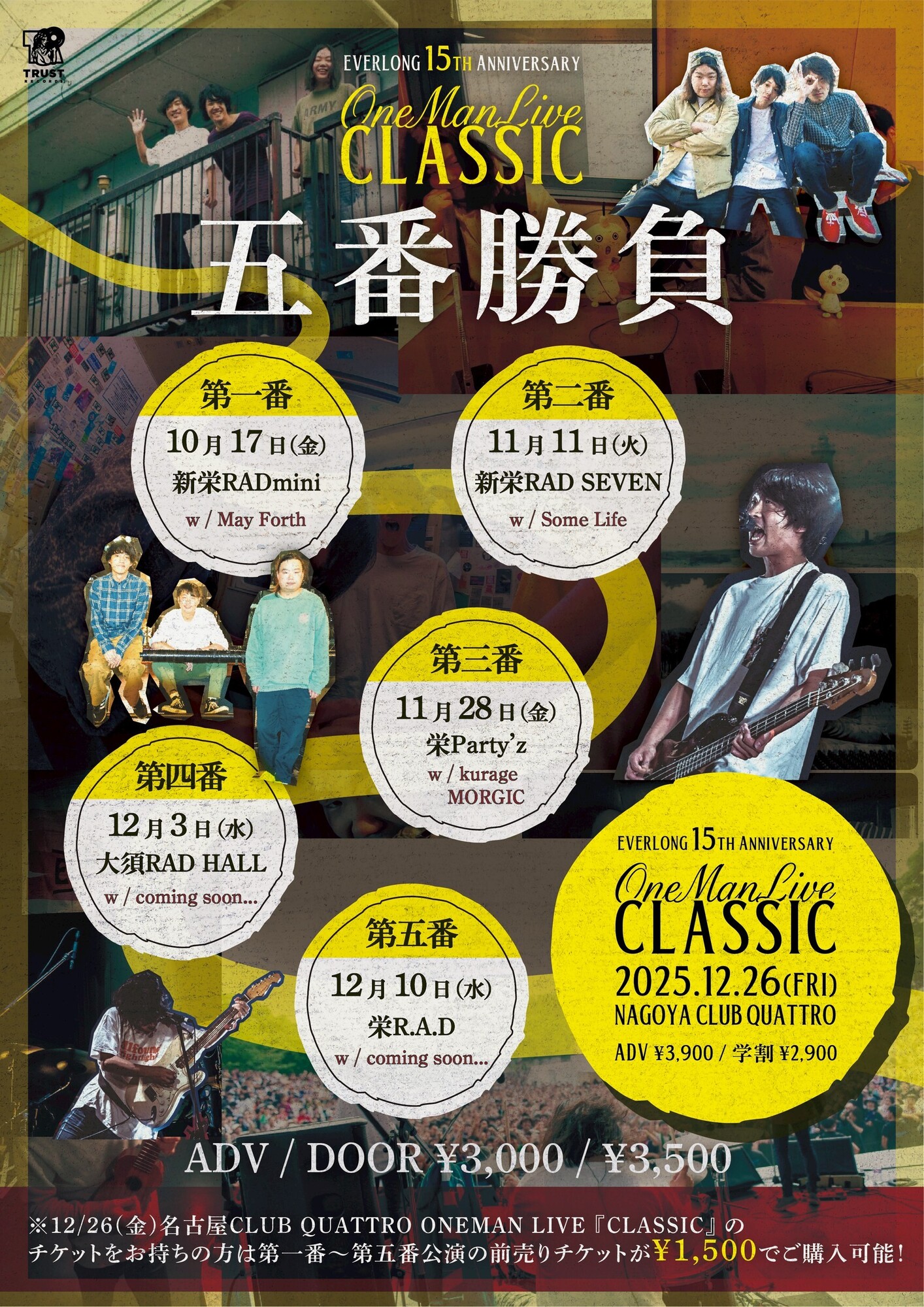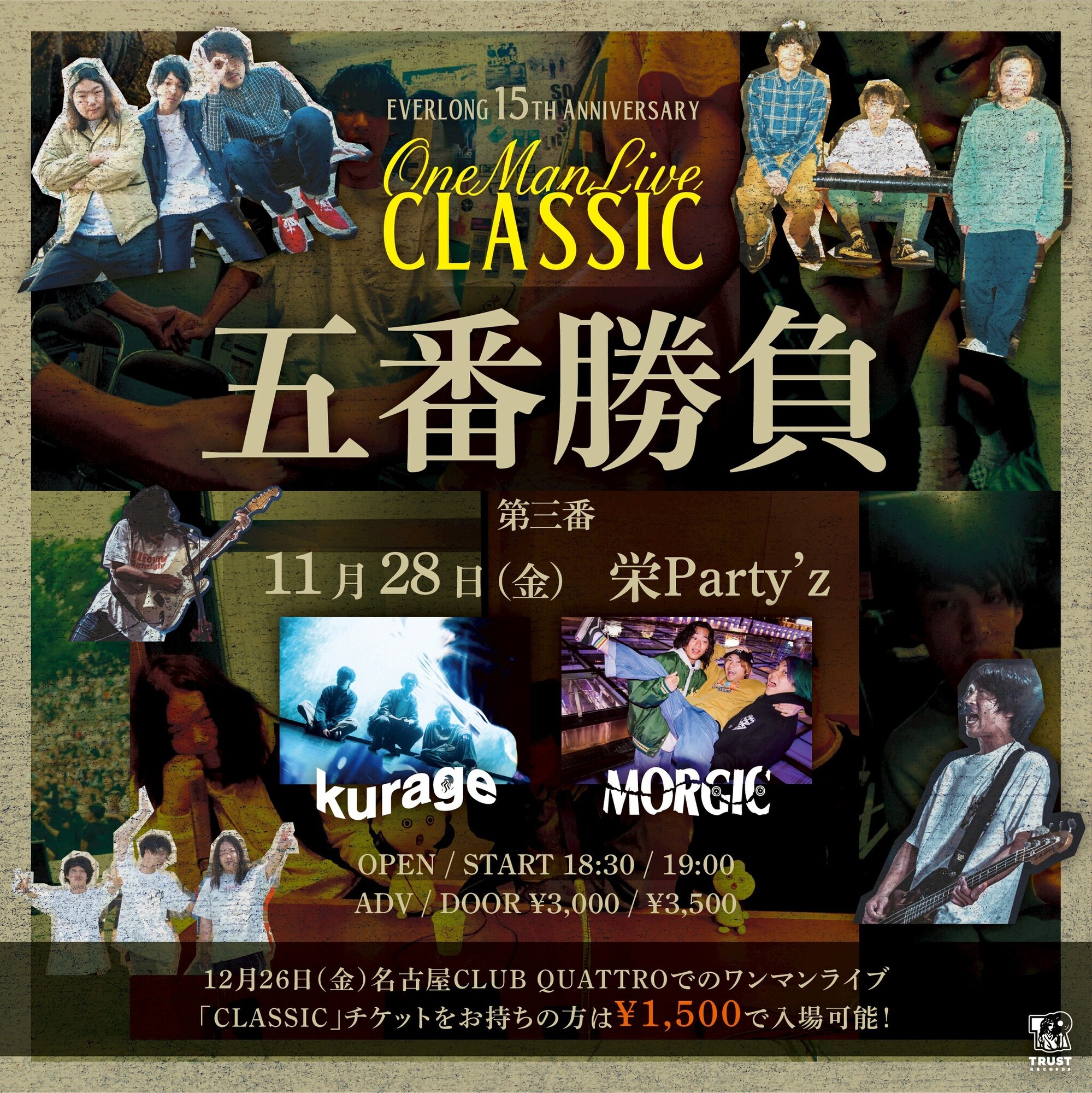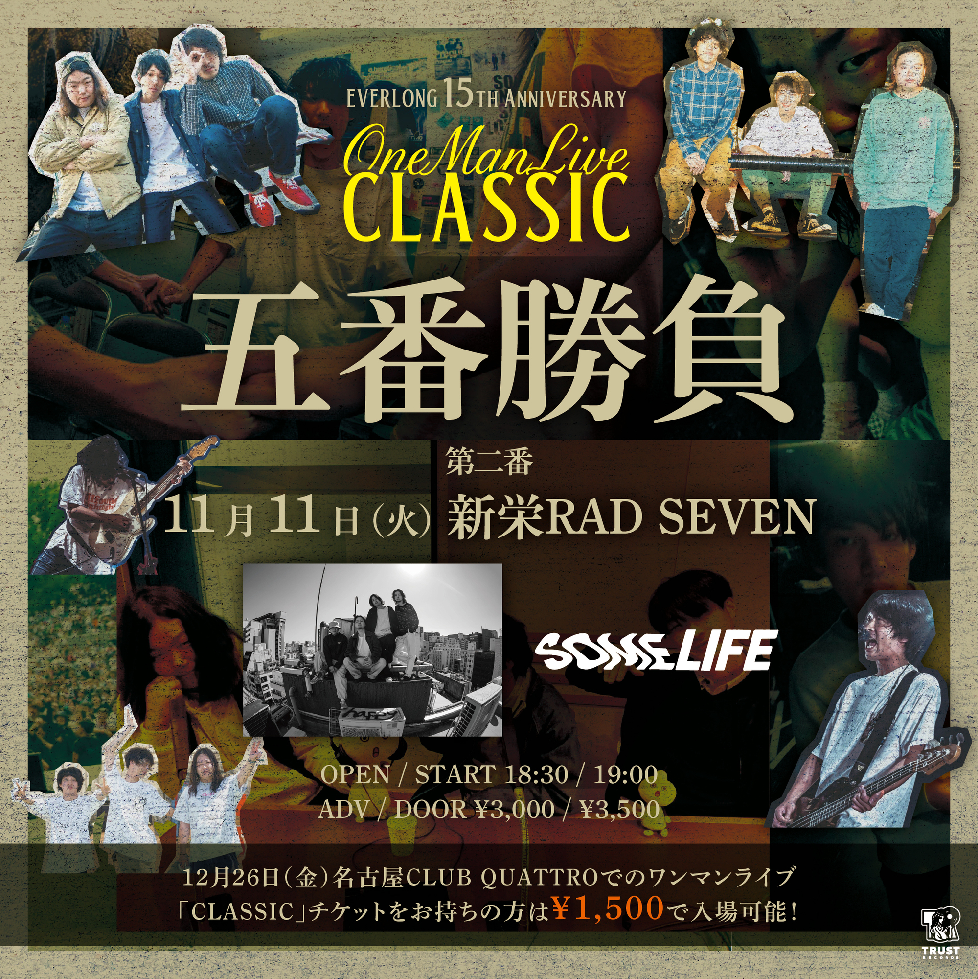 【NEWS!!】TRUST RECORDS所属3ピースバンドEVERLONGが名古屋で行う年末恒例ワンマンライブ「CLASSIC」に向けた自主企画のゲストにSome Life / kurage / MORGICを発表!