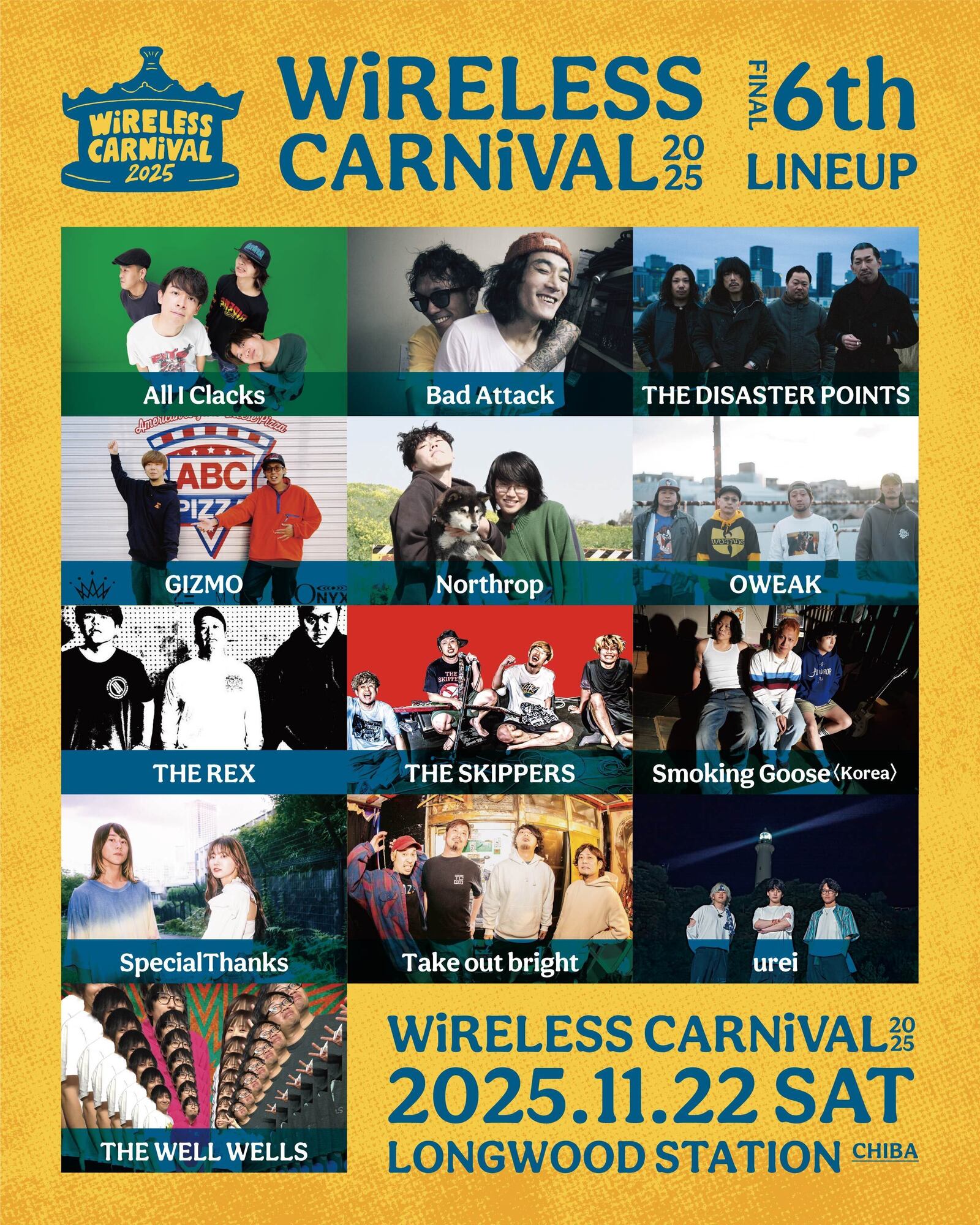 【NEWS!!】開催まで残り1ヶ月!千葉・ロングウッドステーションで行われる『WiRELESS CARNiVAL 2025』最終ラインナップにTHE DISASTER POINTS、SpecialThanks、THE SKIPPERS、All I Clacksら13組が決定!全61組が出揃う!